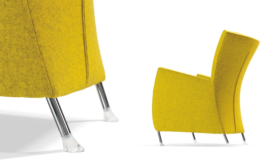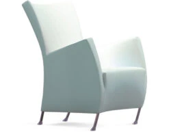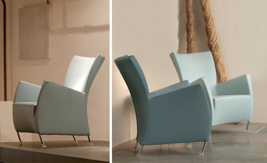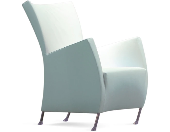 One of the most important and practical features of this armchair is the modest amount of space it occupies. But despite its compact structure, the high concave back guarantees comfort. The high seat base gives the armchair ‘active’ seating characteristics and makes it suitable for people with long legs or those who want to be able to stand up easily. With the attractive geometrical shape of wind-filled sails, this easy chair conjures up images of a tethered yacht.