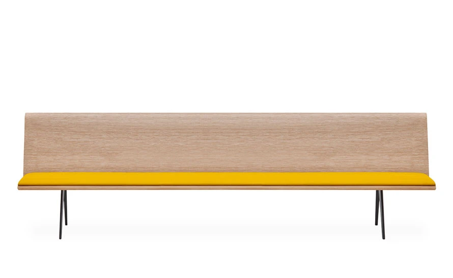 Zinta is comprised of wood shell lined in pads for contract or cushions for a more accommodating seat in a select group of fabrics. Diverse sizes, materials and fill allow for diverse combinations and applications. Shells are available in oak-effect veneered plywood in the natural, brown and dark brown shades and in white laminate and natural oak laminate. Steel base and aluminum legs are painted in dark grey anthracite color. Diverse lengths and angles allow for endless combinations and available upon request. Modules can be combined to create linear or L-shaped arrangements. Please call the hive showroom with any questions: 1-866-663-4483.
