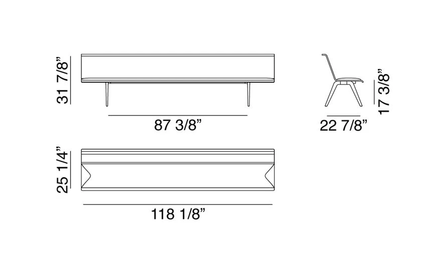 zinta eating bench 4602: 118.1″ w | 25.25″ d | 31.9″ h | seat: 17.4″ h | legs: 87.4″ w | 22.9″ d